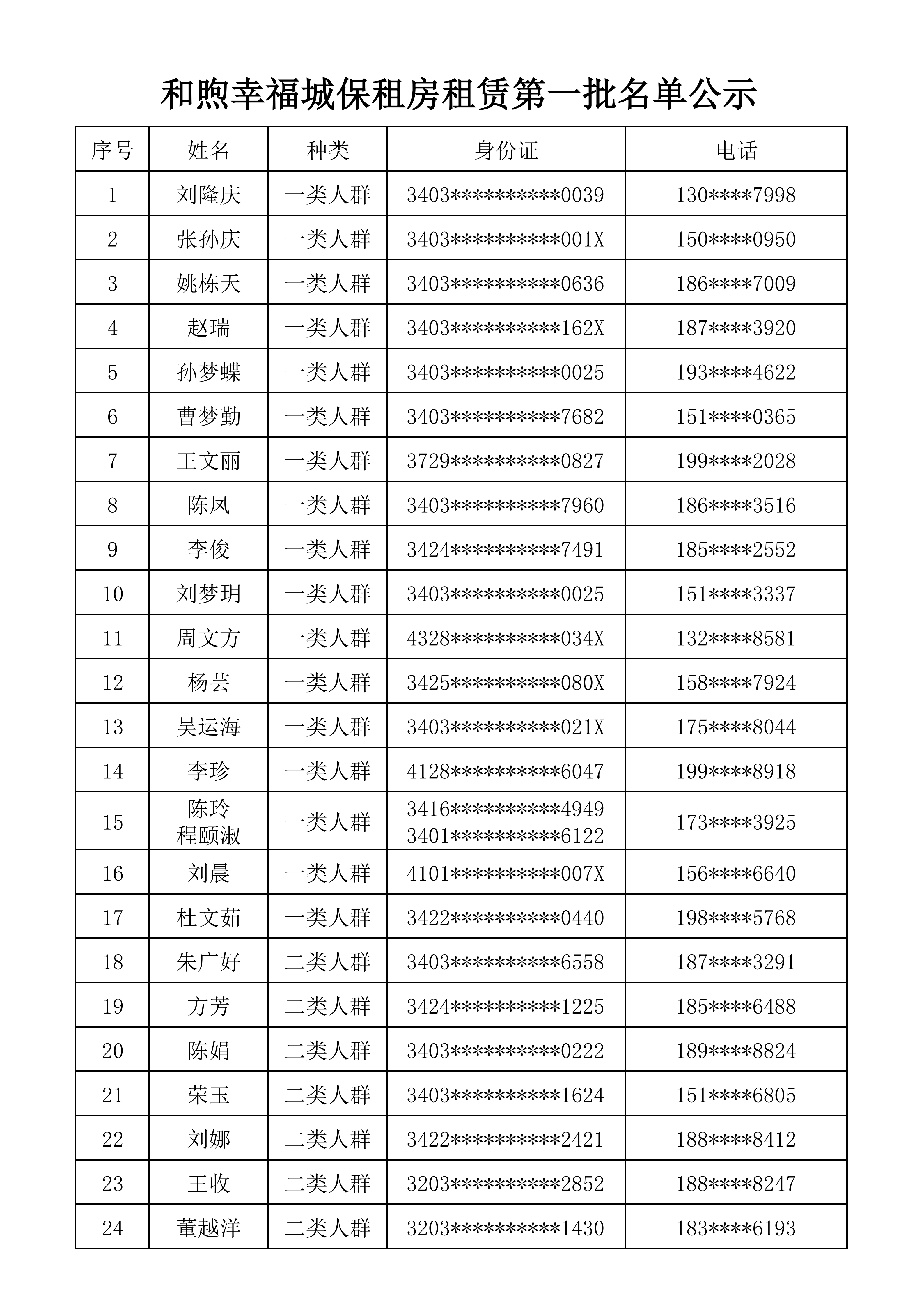 蚌埠市和煦幸福城保障性租賃住房 第一批次配租方案