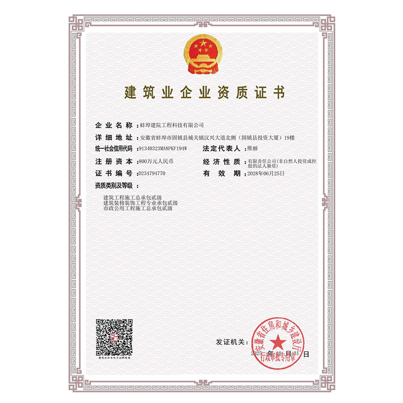 蚌埠建院工程科技有限公司資質(zhì)證書...