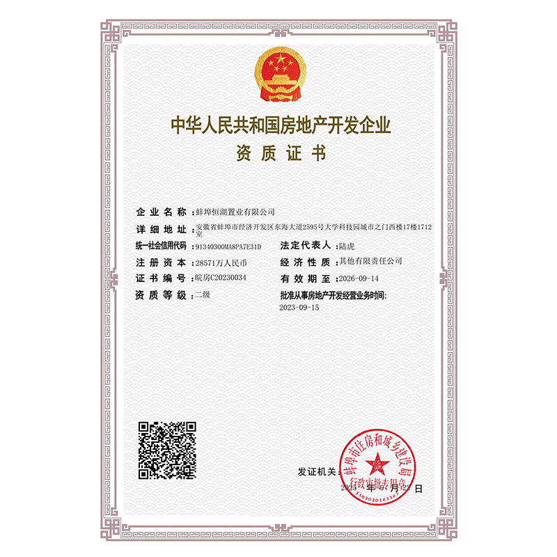 企業(yè)資質(zhì)證書(恒湖置業(yè))
